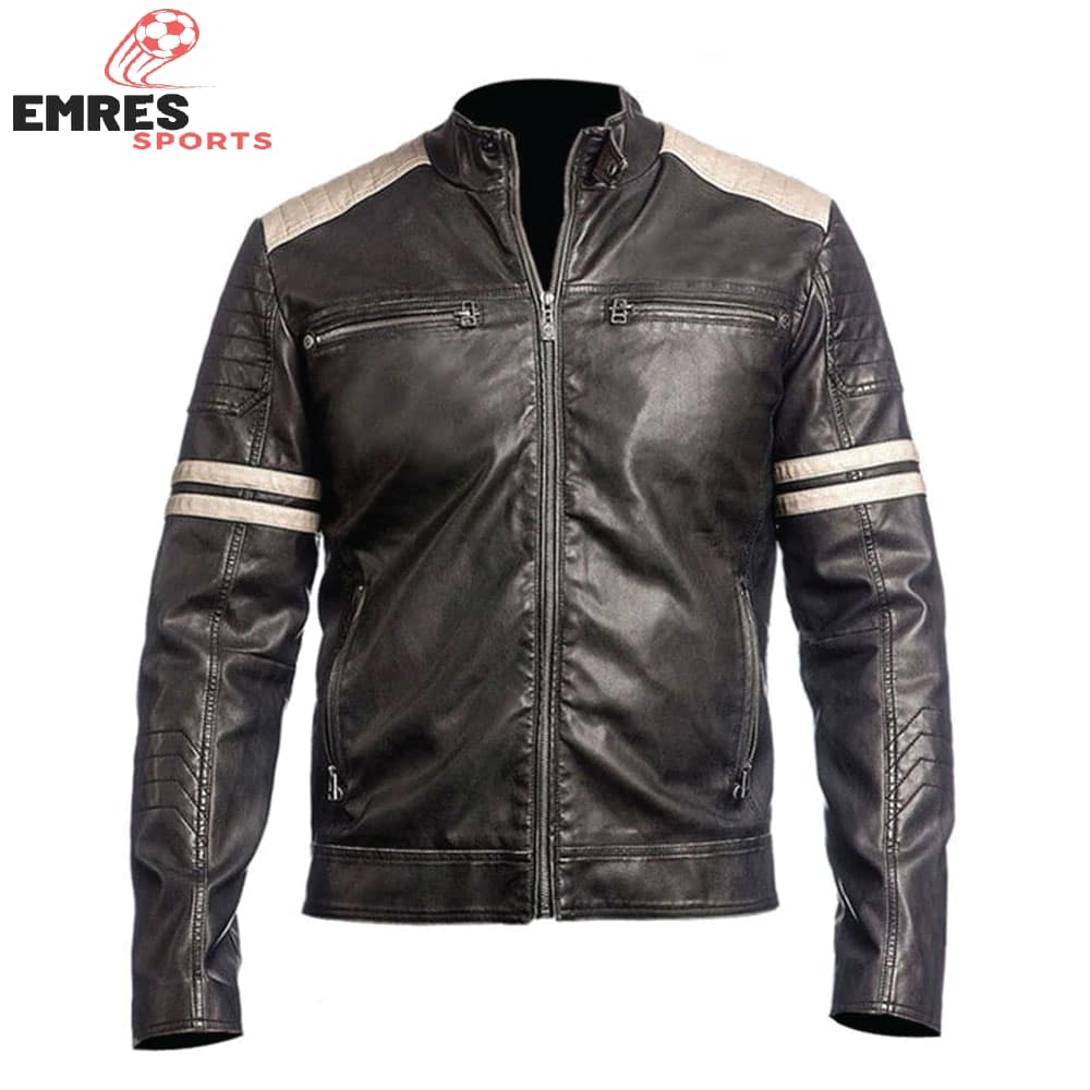 Motorbike leather jacket, motorbike jackets mens, leather motorbike jackets, mens leather motorbike jacket, black motorbike leather jacket, motorbike jackets, white stripes motorbike jacket, YKK zip motorbike jacket, satin lining jacket, motorbike jackets for men, best motorbike jackets reviews, waterproof motorbike leather jacket, cool motorbike jackets, Sialkot motorbike jackets, leather jackets Sialkot, Sialkot craftsmanship.