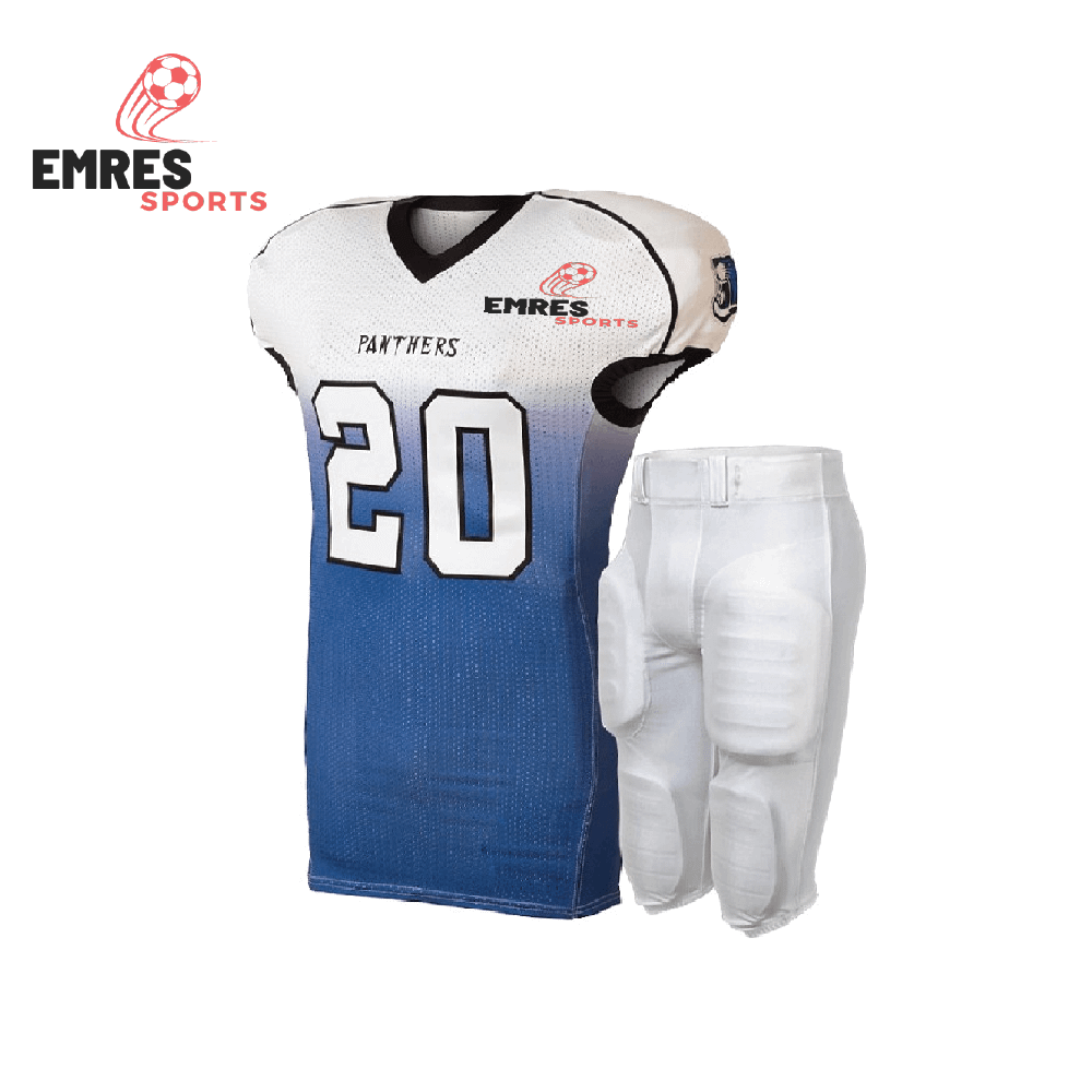 The SkyForge Elite American Football Uniform – White & Sky Blue by EMRES Sports is built for athletes who demand high performance, durability, and modern athletic style. Crafted with premium polyester sports fabric, this uniform provides excellent comfort, breathability, and flexibility, allowing players to perform confidently during competitive matches and intense training sessions.